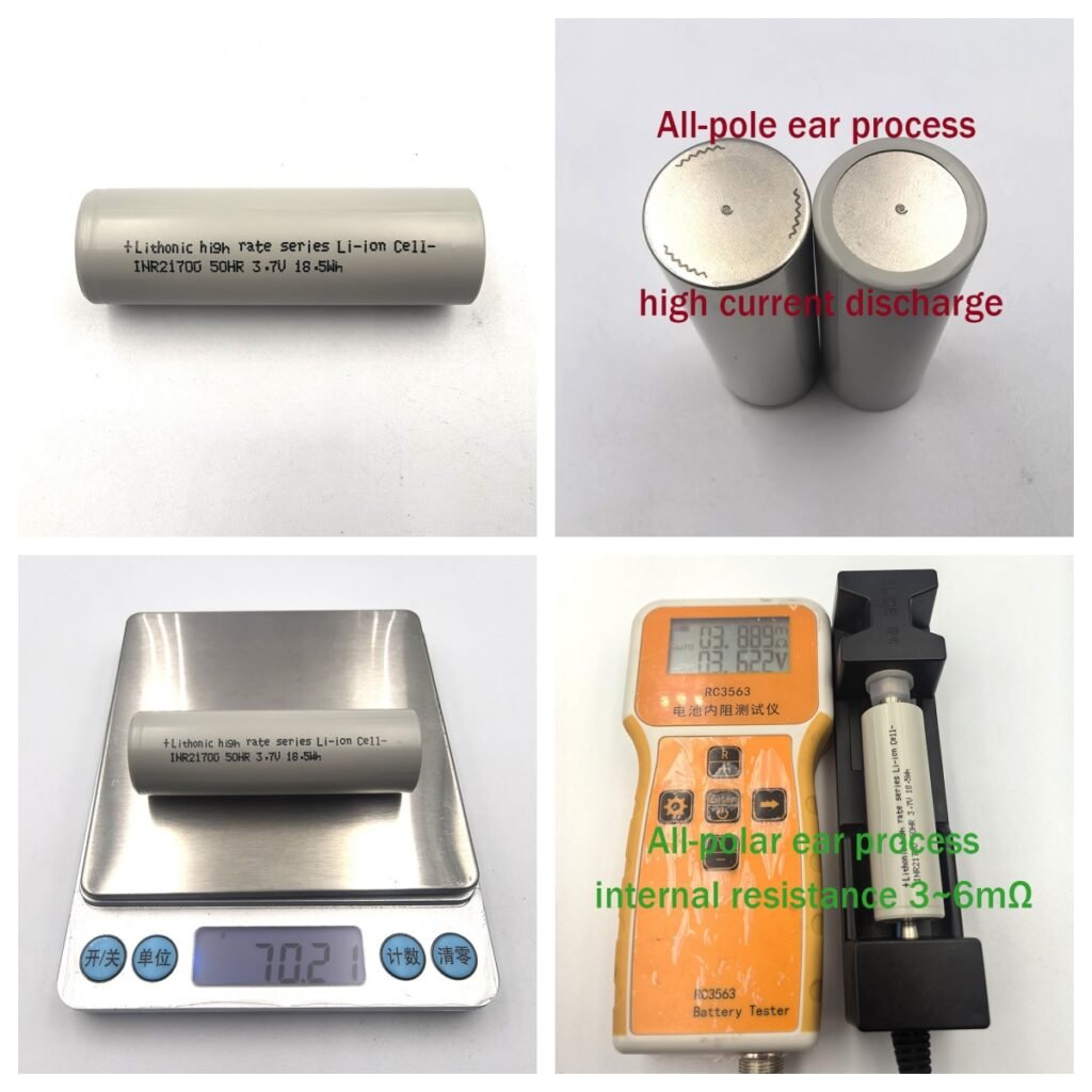 | Parameter | Lithonic 50HR | EVE 50PL | Samsung 50S | Molicel P50B |